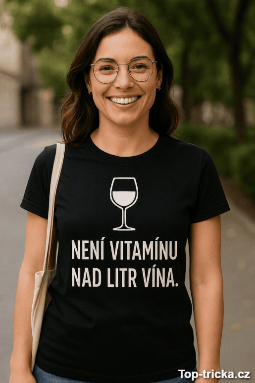 Vtipné tričko není vitamínu nad litr vína