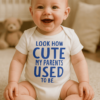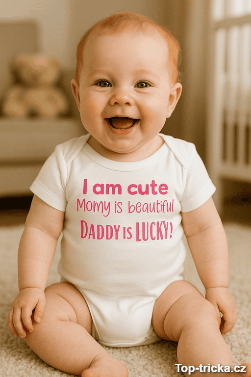 Hledáš vtipné dětské body dárek, který okamžitě zvedne náladu? Nápis „I am cute Momy is beautiful! DADDY is LUCKY!“ je přesně ten typ hlášky, co spustí smích dřív, než se stihne udělat první fotka 📸.