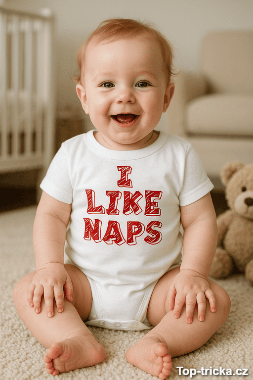 Hledáte vtipné dětské body dárek, který pobaví hned na první pohled? Nápis „I like naps“ je upřímná hláška malého profíka na spánek – a rodiče se v tom poznají okamžitě 😄