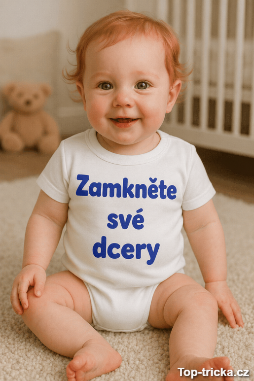 Hledáte vtipné dětské body dárek, který okamžitě zvedne náladu a spustí lavinu smíchu? Nápis „Zamkněte své dcery“ je přesně ten typ hlášky, kvůli které se na návštěvě všichni otočí a pak se začnou chechtat 😄