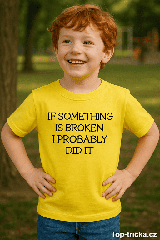 Hledáte vtipné dětské tričko dárek, které řekne pravdu dřív než svědek události? Nápis „IF SOMETHING IS BROKEN I PROBABLY DID IT“ mluví za vše – a přesně proto je tak skvělé. 😅