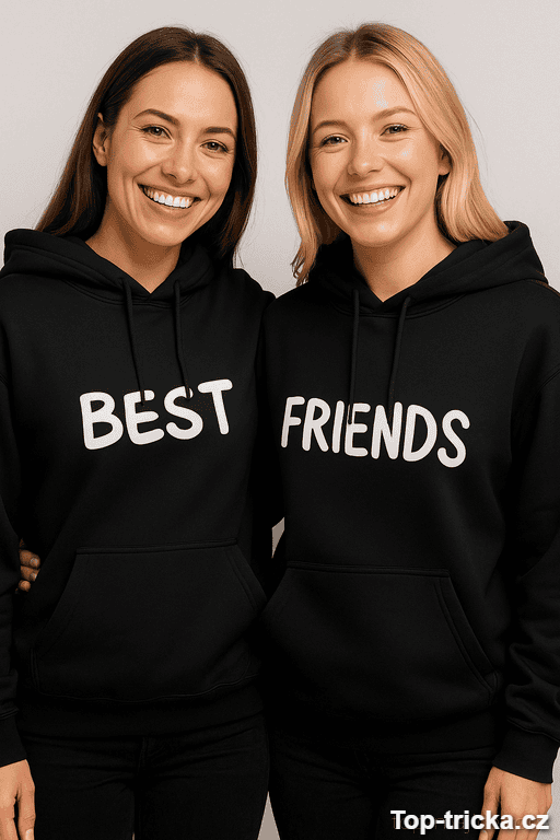 Párová mikina Best Friends je vaše tajná zbraň, jak světu říct „my dva jsme tým“ – bez dlouhých proslovů. Nápis BEST FRIENDS trefí pointu a ještě u toho pobaví 😄.