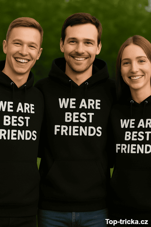 Jako dárek funguje skvěle k narozeninám, na Vánoce, jako překvapení před výletem nebo jen tak – protože nejlepší přátelství si zaslouží vlastní uniformu. Pokud chceš něco, co je zároveň mikina pro best friends a i lehce drzý vzkaz světu, tohle je ono. 😉