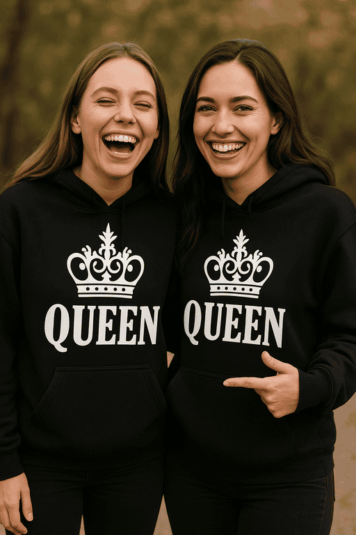 Vtipná mikina s motivem QUEEN je pro všechny, které si jdou svoje – ať už míříte do města, na kafe, nebo jen potřebujete pohodlí na doma. Černá klasika, výrazný nápis a vibe „já to tu vedu“ – ideální i pro páry, co se rády sladí a baví okolí.
