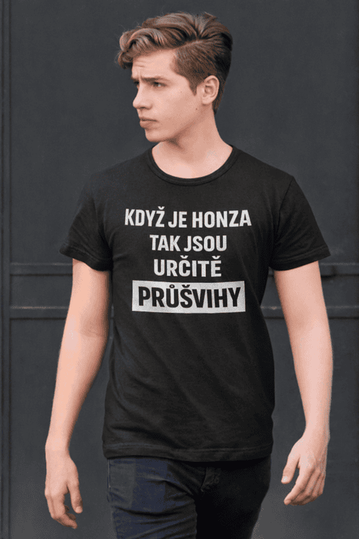 😄 Jakmile se objeví nápis „Když je Honza, tak jsou určitě průšvihy“, zábava může začít! Tohle tričko je jako nenápadná výstražná cedule pro všechny okolo: když dorazí Honza, čekej historky, které se budou vyprávět ještě zítra.