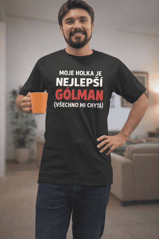 🥅 Vztahový fotbal v praxi: ona v bráně a ty bez šance na průnik! Tohle tričko s nápisem „MOJE HOLKA JE NEJLEPŠÍ GÓLMAN (VŠECHNO MI CHYTÁ)” vystihne, kdo je doma jednička mezi třemi tyčemi.