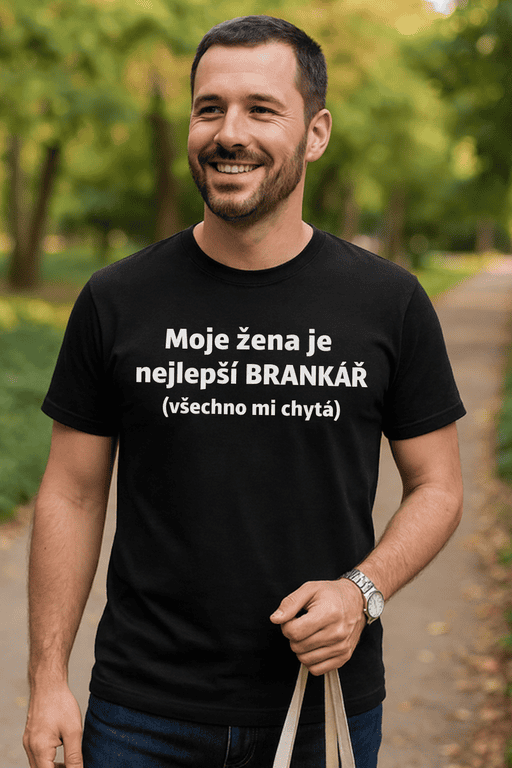Když jde o moje nápady, moje žena chytá všechno! 😂 Tričko s nápisem „Moje žena je nejlepší brankář (všechno mi chytá)“ je jasná trefa do brány. 🥅