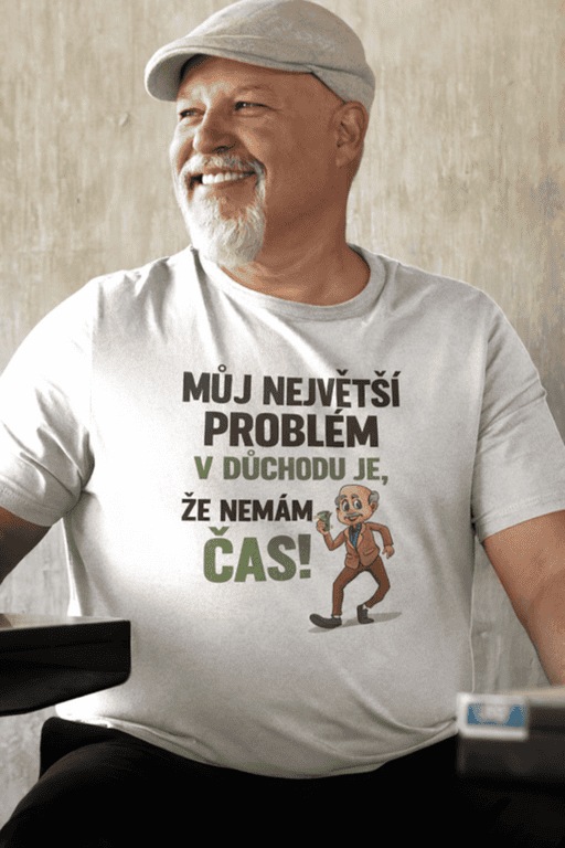 Tohle tričko s kresleným elegantním pánem s drinkem a nápisem „MŮJ NEJVĚTŠÍ PROBLÉM V DŮCHODU JE, ŽE NEMÁM ČAS!“ řekne za nositele všechno. Ideální pro chlapy, co stíhají kafe, noviny, výlety, zahradu i zaslouženou siestu – a stejně tvrdí, že nestíhají. 😄🍹