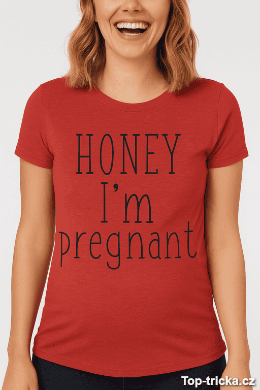 Hledáš těhotenské tričko dárek, který řekne všechno za tebe a ještě u toho pobaví? Nápis „Honey I’m pregnant“ je přesně ten typ hlášky, co spustí smích, překvapení a okamžité objímání. 😉