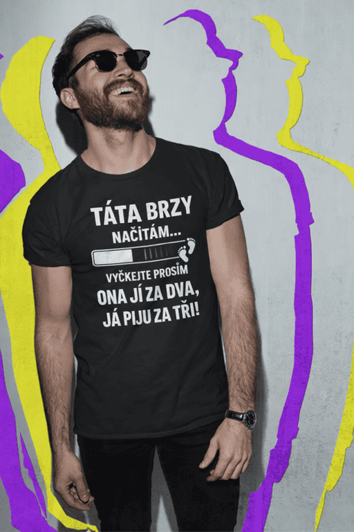 Miminko na cestě a humor už je připravený na start! 🍻 Tričko s nápisem „Táta brzy načítám… vyčkejte prosím. Ona jí za dva, já piju za tři!“ rozesměje hospodu i rodinný oběd. Skvělý dárek pro budoucího tátu. 😄