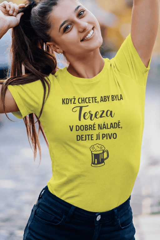 🍺 Žluté tričko, černý potisk a jedna jasná zpráva: když chcete, aby byla Tereza v dobré náladě, dejte jí pivo. Ideální, když má vaše Tereza smysl pro humor a na otázku „Co si dáš?“ už nechce odpovídat pořád dokola. 😄