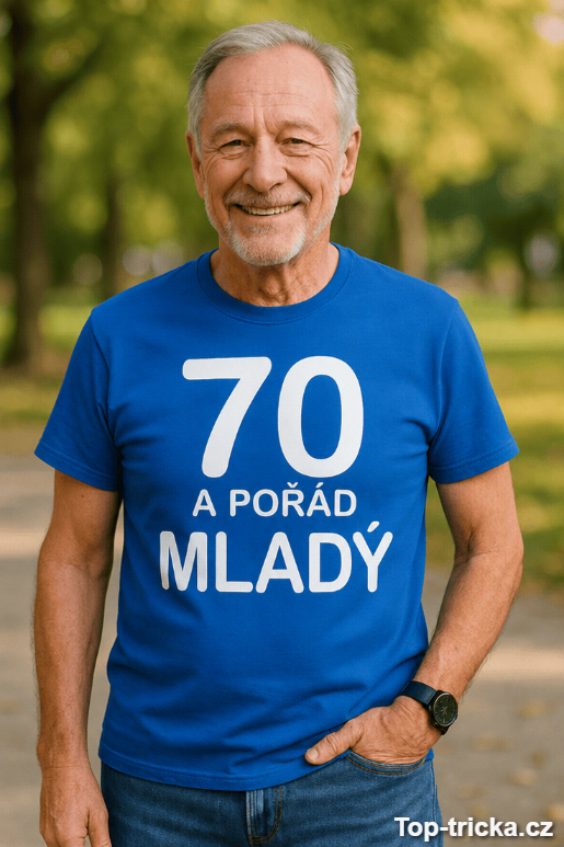 Tohle „70 a pořád mladý“ je tričko pro ty, kteří odmítají zestárnout v hlavě. Je to sebevědomý vtip v jedné větě – a funguje okamžitě, protože každý pochopí pointu 😎