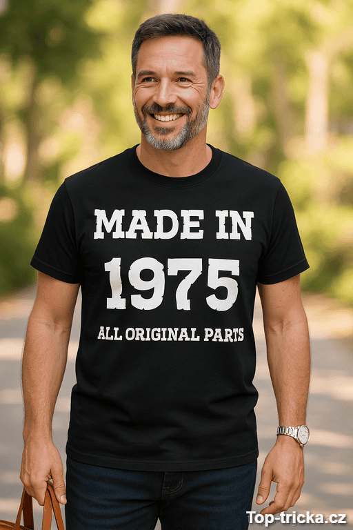 Vtipné tričko All Original Parts s nápisem „Made in 1975 All Original Parts“ je přesně ten typ humoru, který funguje na první pohled. Jemně drzé, sebevědomé a hlavně univerzálně pochopitelné 😄