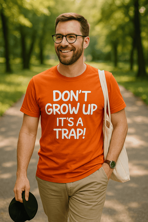 Máte občas chuť odmítnout dospěláctví jednou provždy? 😄 Tohle vtipné tričko DON’T GROW UP IT’S A TRAP! to řekne za vás a pobaví okolí. Skvělá volba na každý den i jako dárek 🎁