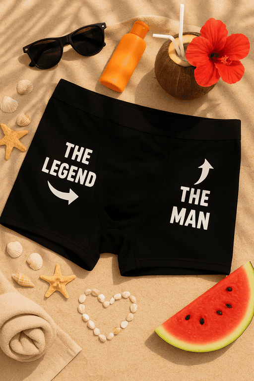 Tyhle vtipné pánské boxerky s nápisem THE LEGEND THE MAN jsou ideální pro parťáka, který má sebevědomí i smysl pro humor. Černá klasika, výrazný potisk a šipky, které dávají jasné „instrukce“ – perfektní kombinace na dárek, co pobaví hned po rozbalení.