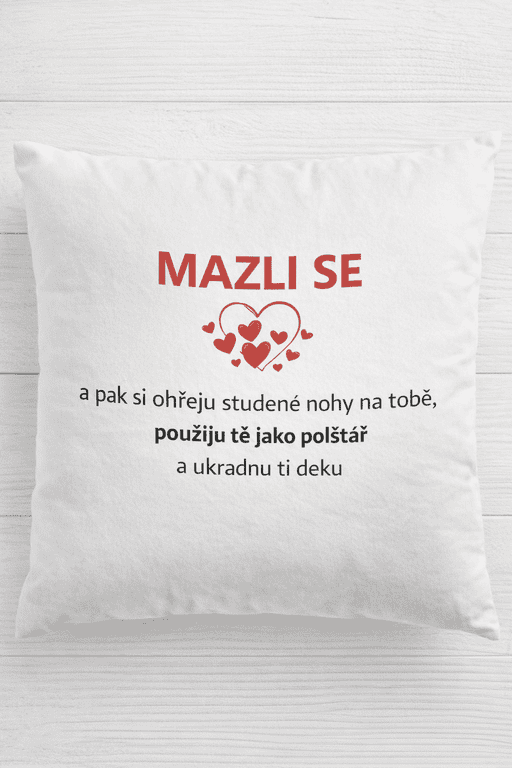 Mazlení je teprve začátek… pak přichází studené nohy, polštářová taktika a krádež deky. 😄 Bílý polštář se srdíčky pro všechny zmrzlíky a jejich trpělivé parťáky. ❤️
