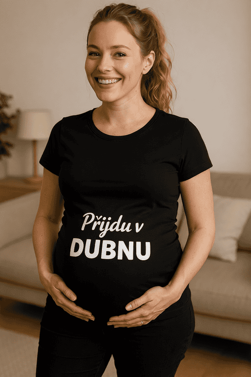 Černé těhotenské tričko s kontrastním bílým nápisem je pohodlné a zároveň perfektní na oznámení termínu bez zbytečných řečí. Stačí jeden pohled a uslyšíš: „Jéé, už se nemůžeme dočkat!“ 😍