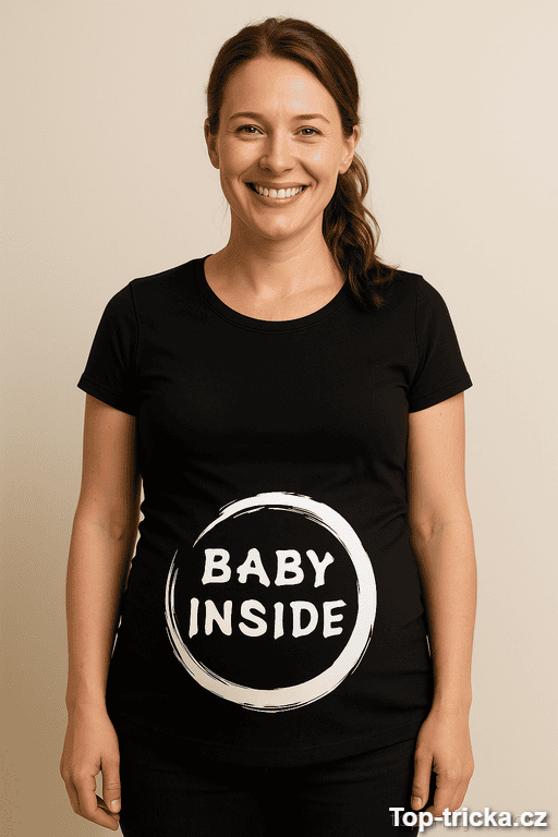 Těhotenské tričko Baby inside je ten nejjednodušší způsob, jak říct „něco se chystá“ bez dlouhých vysvětlování. Nápis Baby inside funguje jako vtipná cedulka „pozor, probíhá výroba“ – a lidi to prostě baví 😄