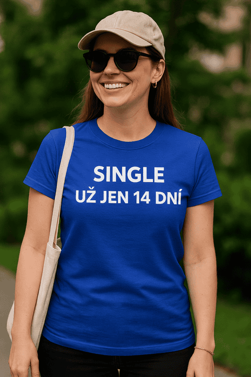 Odpočet běží a ty to chceš dát vědět stylově! ⏳ Dámské tričko s nápisem „Single už jen 14 dní“ řekne všechno za tebe – bez zbytečných vysvětlovaček.