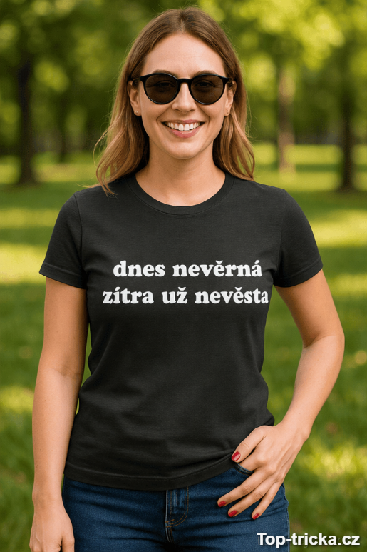 Hledáš vtipné tričko dárek, který udělá okamžitý rozruch? Nápis „dnes nevěrná zítra už nevěsta“ je drzý, hravý a přesně tak akorát na to, aby se lidi smáli… a trochu červenali. 😅