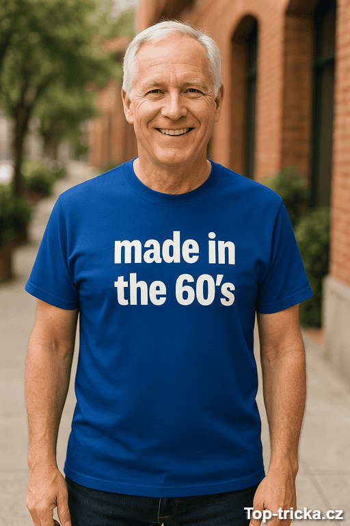 Tohle tričko s nápisem „made in the 60’s“ je malá provokace s velkým efektem. Vtip je jasný na první pohled: dotyčný není „starý“, jen poctivě vyrobený v éře, kdy vznikaly ikony 😄