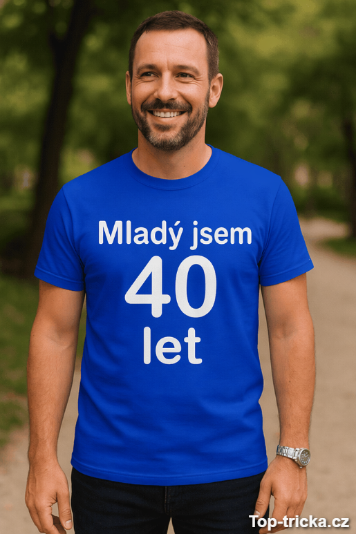 Tohle vtipné tričko 40 let dárek je pro každého, kdo ví, že věk je jen číslo… a občas i dobrý vtip. Nápis „Mladý jsem 40 let“ umí pobavit, popíchnout a zároveň hrdě připomenout, že čtyřicítka má styl 😉