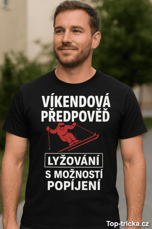 Vtipné tričko víkendová předpověď lyžování