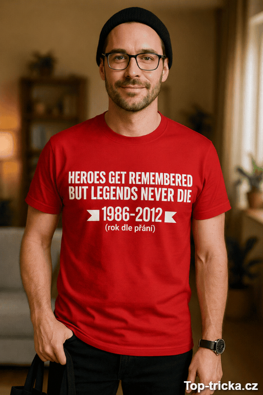 Vtipné tričko legends never die rok dle přání