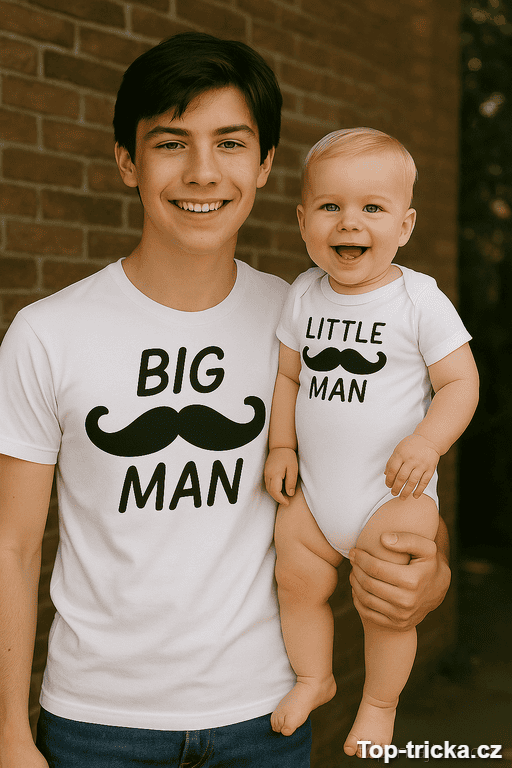 Vtipné tričko a body set Big Man Little Man